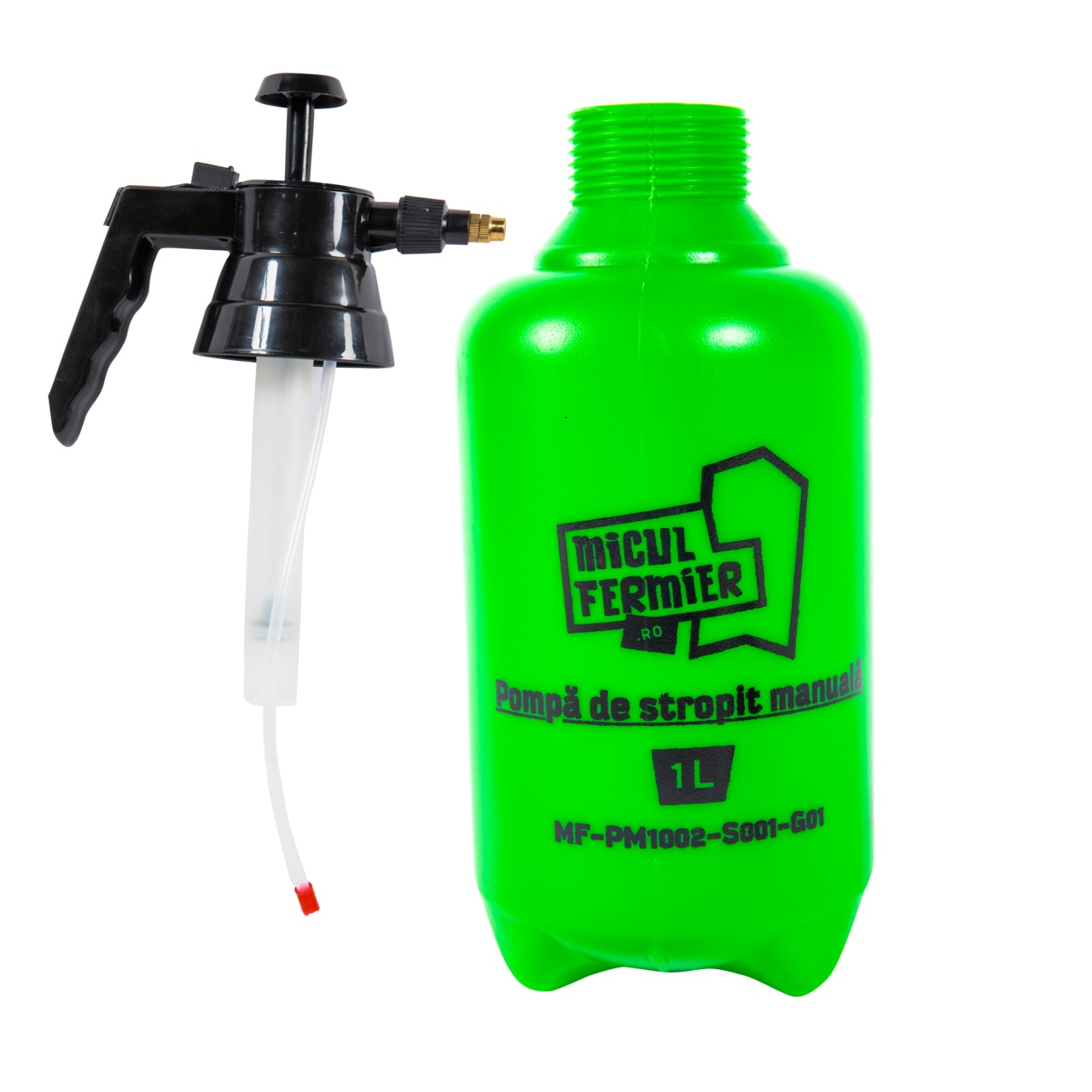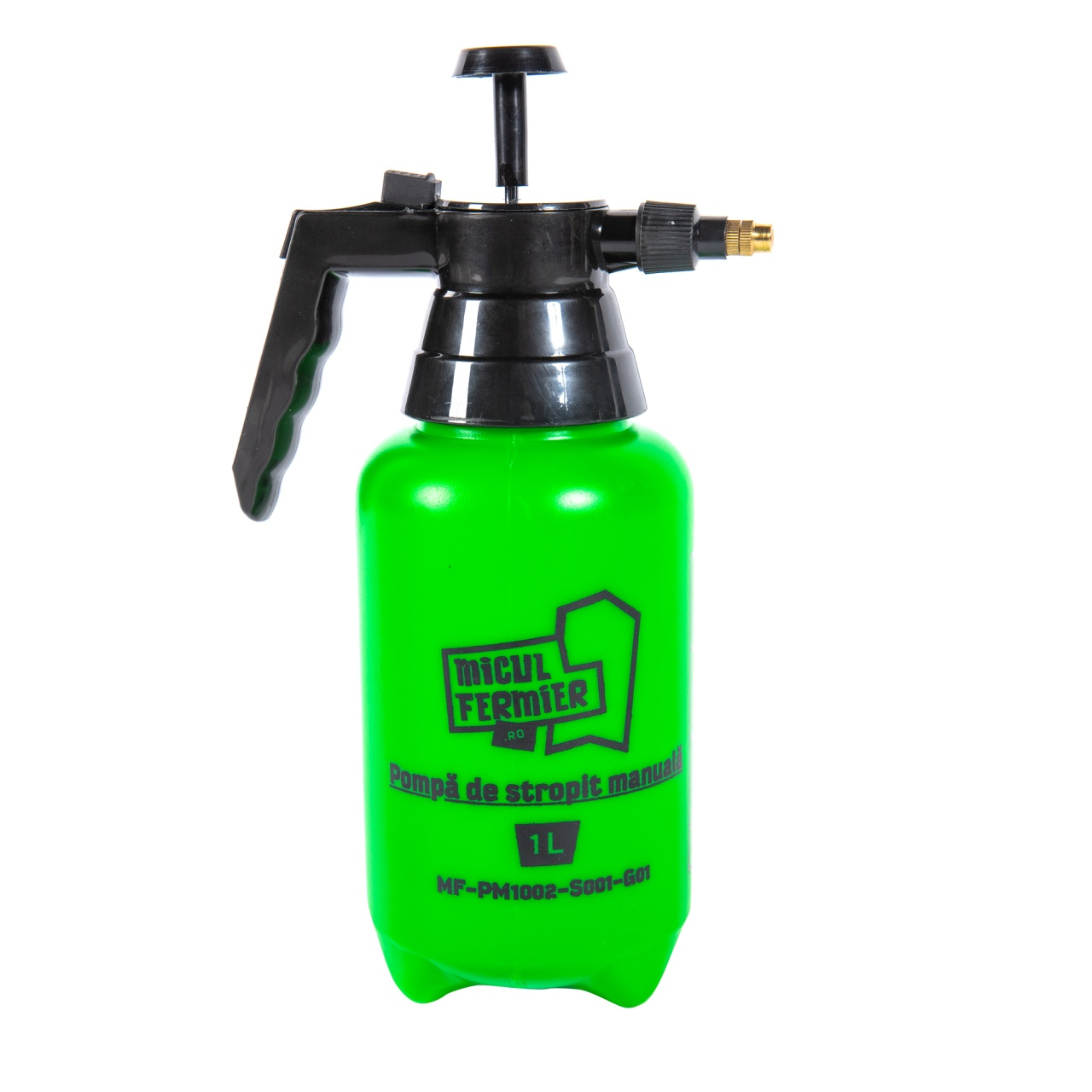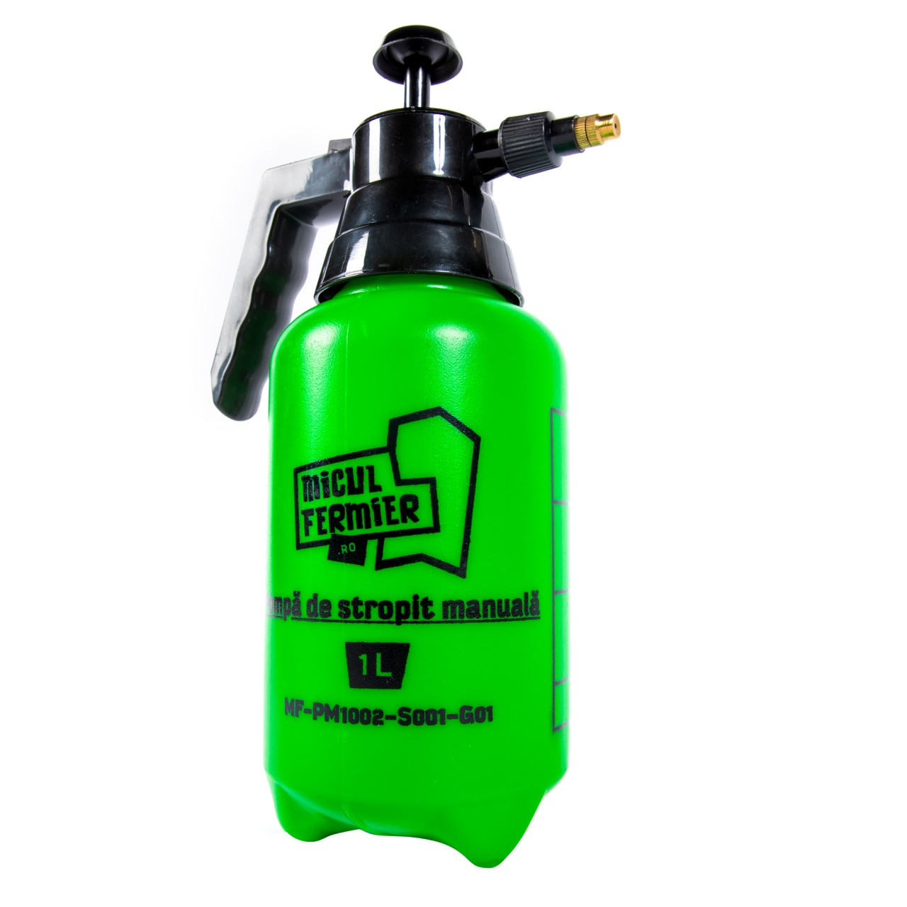 Pompa de stropit manuala, Micul Fermier 1L, MF-PM1002-S001-G01Pompa de stropit manuala, Micul Fermier 1L este un produs destinat atat uzului casnic, cat si stropirii gradinii dumneavoastra.Cu aceasta pompa manuala puteti actiona la stropirea plantelor, copacilor sau a vitei de vie, putand adauga orice fel de pesticid sau insecticid.Pompa de stropit manuala mai poate fi utilizata cu succes si la operatiuni de deratizare in spatii publice, hoteluri, magazine, apartamente, etc.