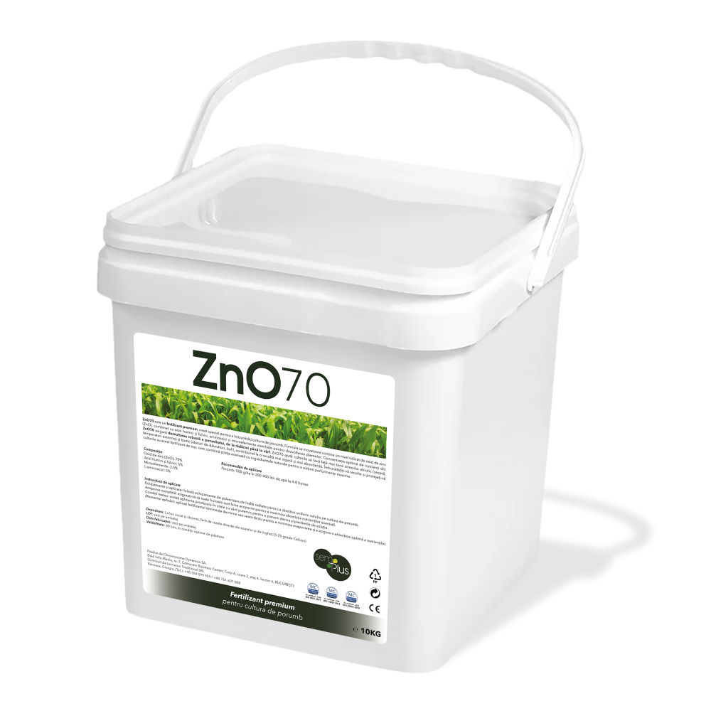 ZnO70 este un fertilizant premium, conceput special pentru a îmbunătăți cultura de porumb. Formula sa inovatoare conține un nivel ridicat de oxid de zinc (ZnO), combinat cu acizi humici și fulvici, aminoacizi și microelemente esențiale pentru dezvoltarea plantelor.