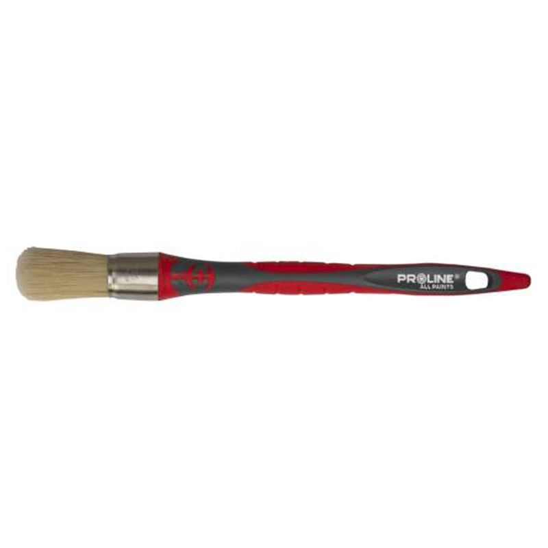 • Concepută pentru vopsirea cu orice tip de vopsele sau lacuri. Ideală pentru a realiza diverse forme, elemente de mici dimensiuni sau în locuri greu accesibile. Periile sunt realizate dintr-un amestec de înaltă de calitate de păr natural TOPS60 și fibre sintetice. Mânerul ergonomic din două componente asigură confort în timpul lucrului. Perii pensulei sunt fixați cu o bandă din oțel inoxidabil. Ambalajul din PVC a fost special conceput pentru a putea fi reutilizat pentru depozitarea pensulei (după spălarea și uscarea acestea).